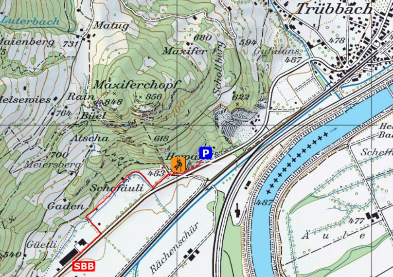 Von Sargans auf der Hauptstrasse Richtung Trübbach fahren. Kurz vor dem Dorf befindet sich auf der linken Strassenseite das Klettergebiet und anschliessend der Parkplatz direkt an der Strasse.